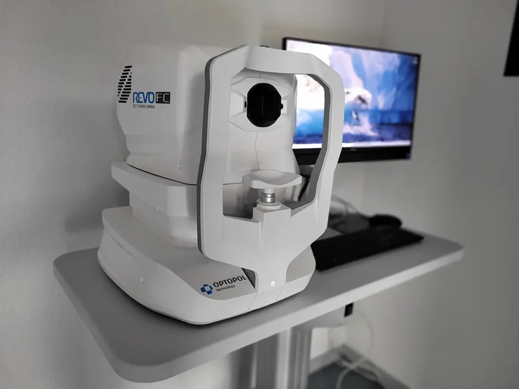 Unsere Praxis verfügt über moderne Geräte für eine präzise und schonende Diagnostik. Dazu zählt die Messung des Augeninnendrucks zur Früherkennung von Grünen Star (Glaukom), die genaue Ausmessung vorhandener Sehhilfen sowie modernste bildgebende Verfahren wie die dreidimensionale Vermessung der Makula und des Sehnerven mittels OCT (optische Kohärenztomografie).